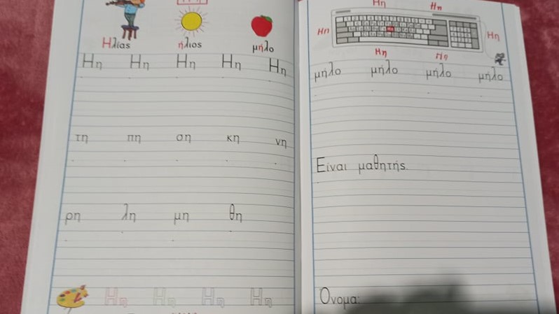 Την πρόταση που έχουν για ορθογραφία τη γράφουν τρεις φορές στο κόκκινο τετράδιό τους.