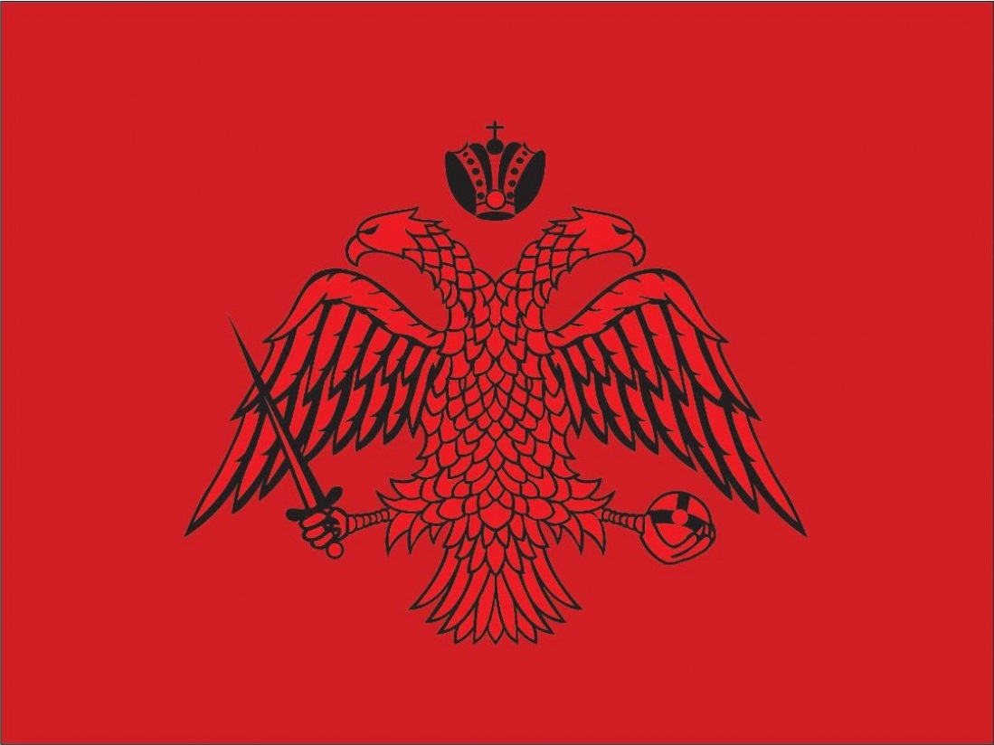 Η συγκεκριμένη σημαία υιοθετήθηκε από τον στρατό του Βυζαντίου στα μέσα του 11ου αιώνα (πολεμική σημαία του Βυζαντίου). Το κόκκινο χρώμα συμβολίζει το αίμα των στρατιωτών. Τη συγκεκριμένη κόκκινη σημαία με Βυζαντινό αετό ύψωσε και ο Κορκονδείλας Κλαδάς μετά την άλωση της Κωσταντινούπολης και φυσικά κατά το επαναστατικό κίνημα εναντίον των Οθωμανών (1479 - 1481).