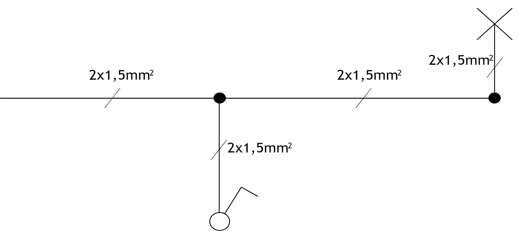Χρησιμοποιώντας το πρόγραμμα ProfiCAD, μέσω των πλαϊνών υπομενού (στα εικονίδια συμβόλων) hoyse electrical symbols και electrical installations, σχεδιάστε το μονογραμμικό και πολυγραμμικό ηλεκτρολογικό σχέδιο κυκλώματος απλού διακόπτη που ελέγχει 2 φωτιστικά σημεία (λάμπες), όπως φαίνεται στην παραπάνω εικόνα.