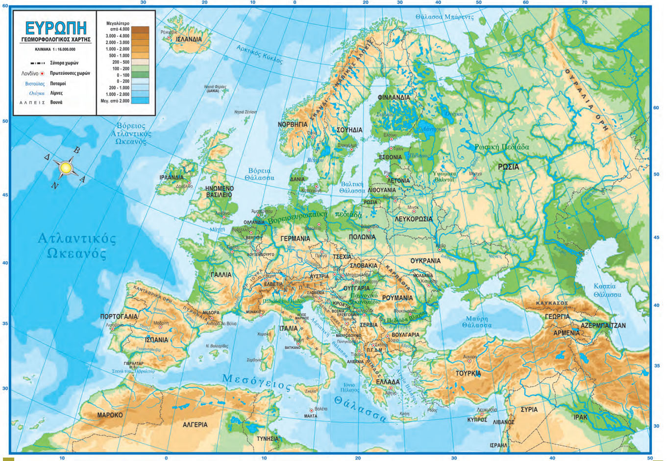 | Ευρώπη - γεωφυσικός χάρτης Δημιουργός: ΔΗΜΗΤΡΙΟΣ ΣΑΡΑΦΗΣ |