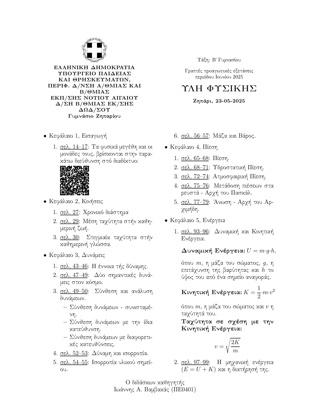 | Υλη Εξετάσεων Ιουνίου 2025 Δημιουργός: ΙΩΑΝΝΗΣ ΒΑΜΒΑΚΑΣ |