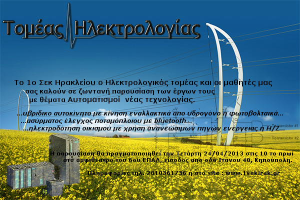| Έκθεση έργων τομέα 24-4-2013 - αφίσα Δημιουργός: Ηλεκτρολογικός τομέας 1ου Ε.Κ. Ηρακλείου |