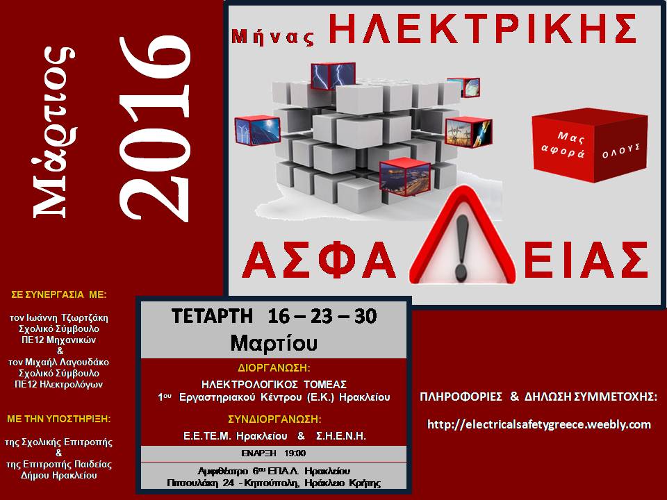 | Μήνας Ηλεκτρικής Ασφάλειας 2015 - αφίσα Δημιουργός: Ηλεκτρολογικός τομέας 1ου Ε.Κ. Ηρακλείου |