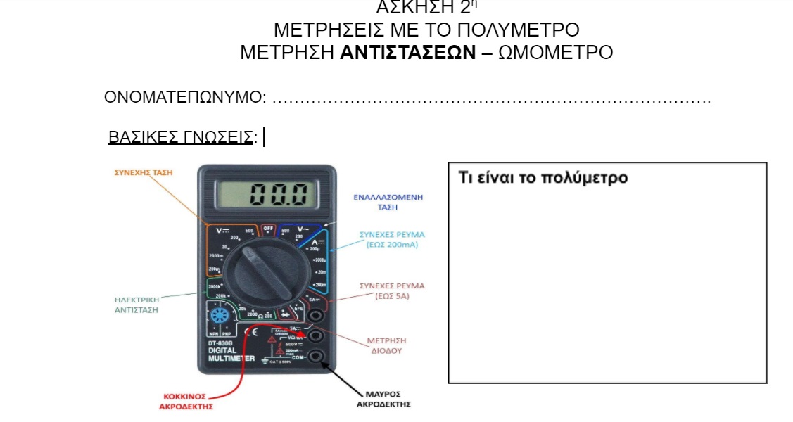 | Πολύμετρο ,Αμπερόμετρο, Βολτόμετρο Β΄ Γεν. Λυκείου | 2/12/02 | |