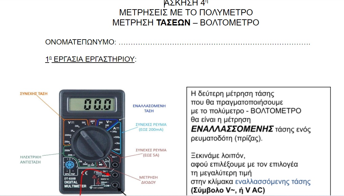 | Μέτρηση με βολτόμετρο Δημιουργός: ΦΩΤΙΟΣ ΠΑΝΑΓΙΩΤΟΠΟΥΛΟΣ |