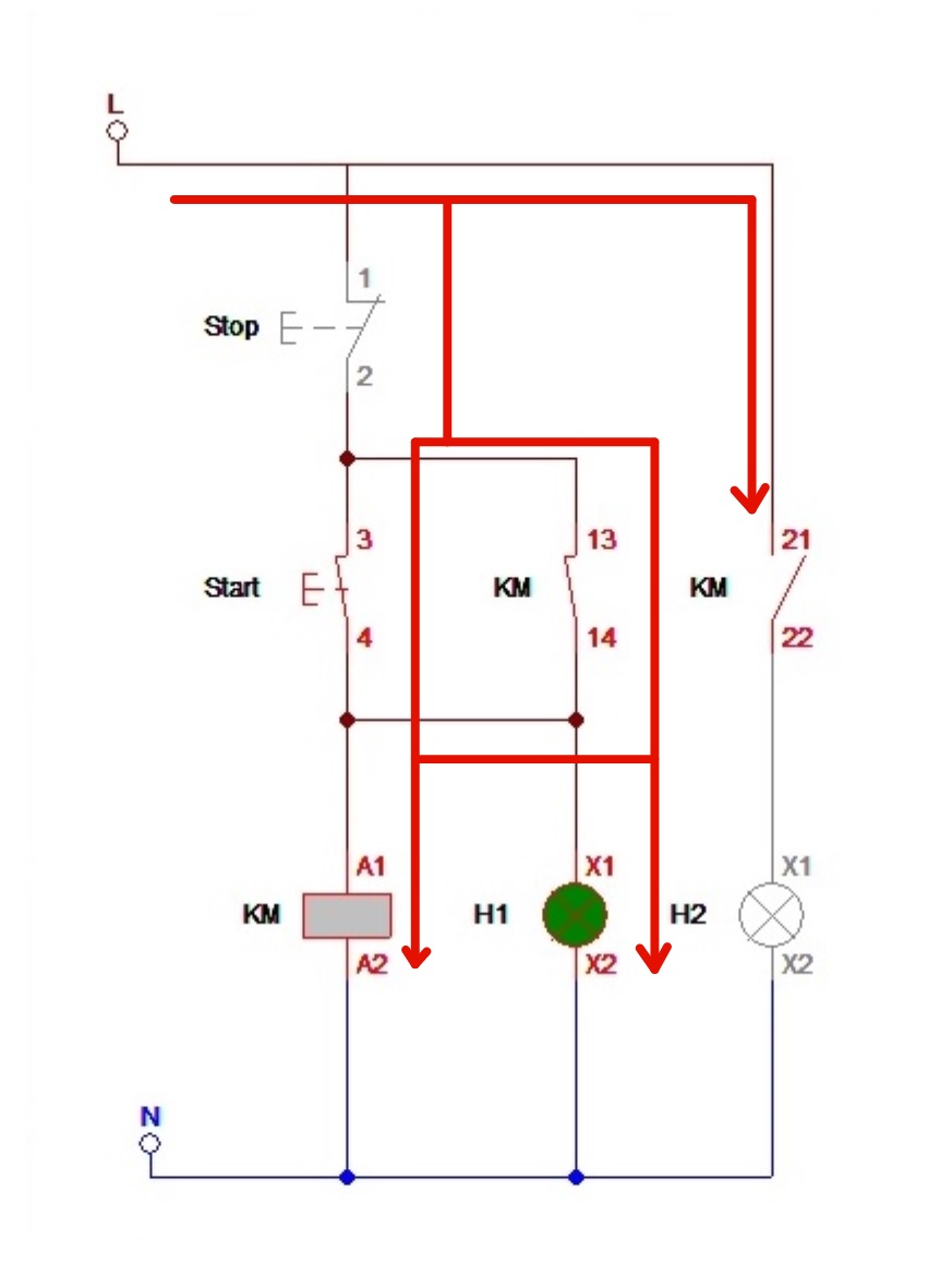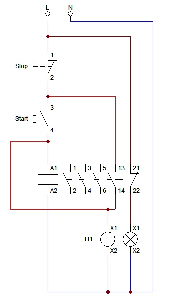 | Λειτουργικό σχέδιο μαγνητικής επαφής με δυο ενδεικτικές λυχνίες σε σειρά Δημιουργός: ΕΥΑΓΓΕΛΟΣ ΝΙΚΟΛΑΟΥ |